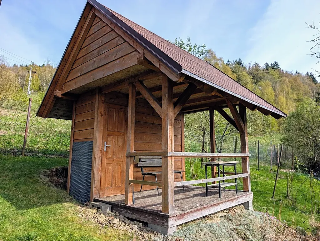 Nabízím k prodeji zahradu s dřevěnou chatou a kolnou o celkové výměře 502 m2, nacházející v ul. Popelnická v Tanvaldě, část obce Šumburk nad Desnou. Jedná se o slunný pozemek přístupný pouze pěšky (cca 30 metrů pěšinou od asfaltové místní komunikace) přes obecní pozemek. Na zahradu je přivedena užitková voda ze studně, která je umístěna na cizím pozemku. Do chatky je zaveden elektrický proud ze sousední zděné garáže. Nutno dořešit podružné měření na zahradě nebo požádat ČEZ o připojení. Chata byla postavena cca před 16 lety a je ve velmi dobrém stavu. Stejně tak kolna s terasou, kde je umístěna bio toaleta a sklad na zahradní nábytek. Možno přikoupit sousední zahradu o výměře 644 m2, nebo dřevěnou kolnu (garáž) v blízkosti zahrady. Ihned k dispozici.