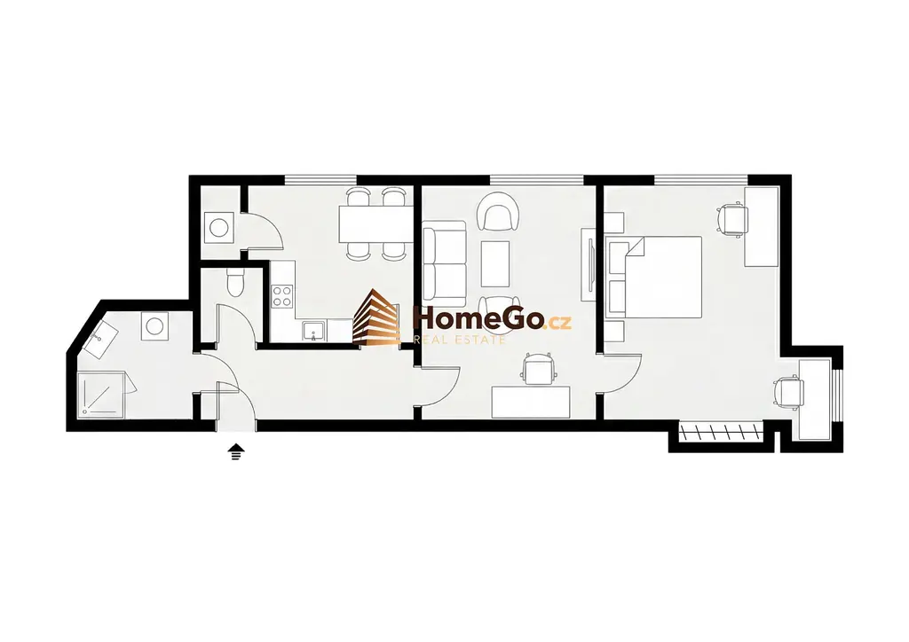 • jedna neprůchozí ložnice
