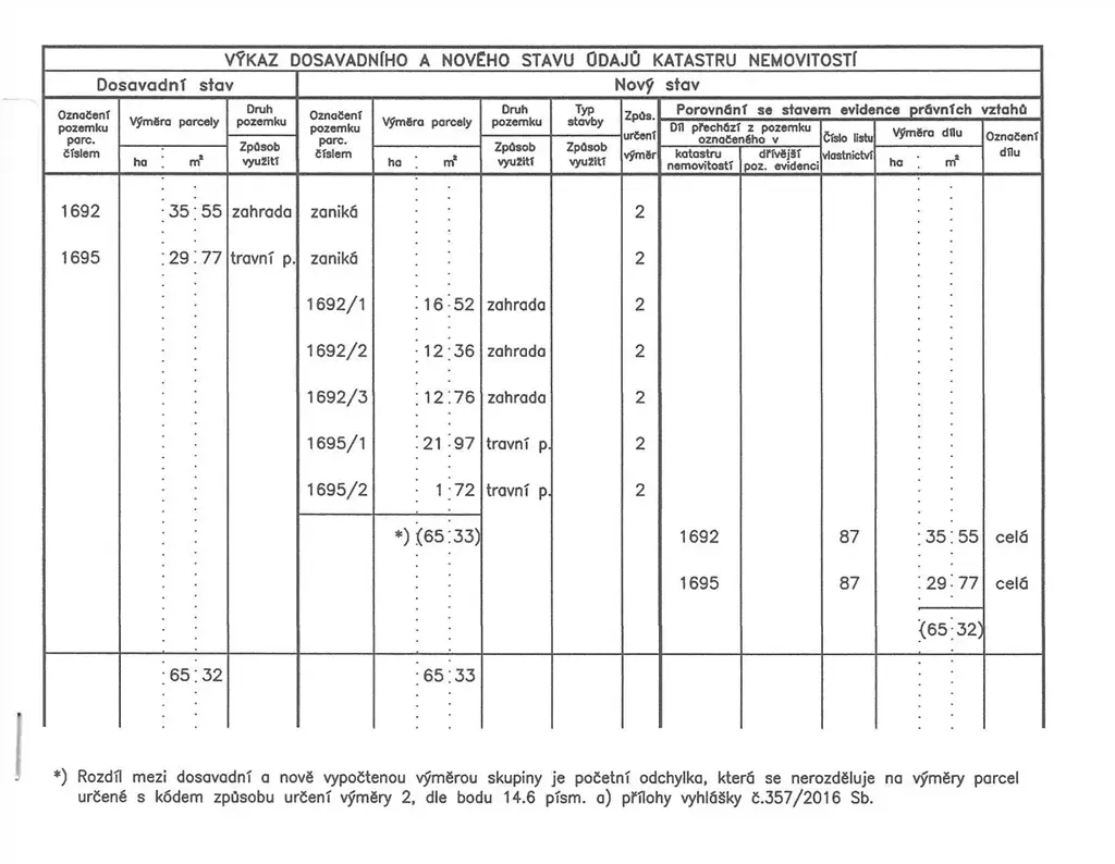Parametry pozemku