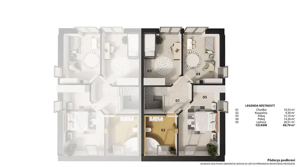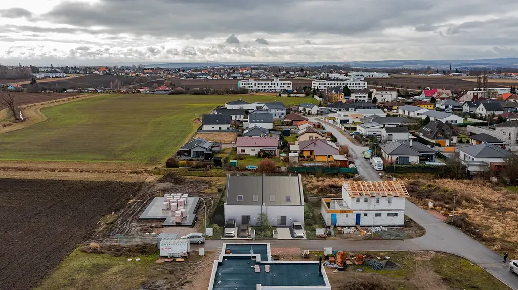 Exkluzivně nabízíme k prodeji novostavbu rodinného domu o dispozici 4+kk v klidné části Pardubic – Dražkovice. Jedná se o moderní dvoupodlažní rodinný dům s celkovou užitnou plochou přibližně 150 m², ( podlahová plocha je 136,6m2) který je situovaný na pozemku o výměře přibližně 428,5m² ( bude přesně zaneseno při dělení ). . Dům je aktuálně ve výstavbě a jeho dokončení je plánováno na jaro / léto roku 2026. V současné době je tak stále možné sledovat průběh výstavby a zájemcům můžeme na vyžádání zasílat aktuální fotografie ze stavby. Samozřejmostí je také možnost osobní prohlídky přímo na místě. Dispozice domu je navržena velmi prakticky a nabízí dostatek prostoru pro pohodlné rodinné bydlení. V 1. nadzemním podlaží se nachází vstupní zádveří o velikosti 4,89 m², na které navazuje chodba se schodištěm do patra o velikosti 6,58 m². Součástí přízemí je koupelna s toaletou o velikosti 7,65 m² a prostorná technická místnost o velikosti 12,38 m², která poskytuje dostatek prostoru pro technologie domu i další využití. Hlavní obytnou část tvoří prostorný obývací pokoj s kuchyňským koutem o velikosti 30,49 m², který je navržen jako otevřený prostor propojující obývací část, jídelnu a kuchyni. Z této místnosti je přímý vstup na terasu a do zahrady. Praktickým doplňkem je také samostatná spíž o velikosti 1,88 m². Celková plocha tohoto podlaží činí přibližně 66,40 m². Ve 2. nadzemním podlaží se nachází klidová část domu s celkovou plochou přibližně 69,79 m². Dispozice zahrnuje chodbu o velikosti 10,53 m², koupelnu o velikosti 9,30 m², dva samostatné pokoje o velikosti 15,19 m² a 14,26 m² a hlavní ložnici o velikosti 20,51 m². Toto řešení nabízí ideální rozdělení prostoru pro rodinné bydlení, kdy ložnice rodičů a dětské pokoje poskytují dostatek soukromí. Dům bude dokončen v moderním a nadčasovém standardu. Součástí je podlahové vytápění, tepelné čerpadlo vzduch–voda, plastová okna s trojskly, vinylové podlahy v šedém odstínu, bílé interiérové dveře s černým kováním a kompletně dokončené koupelny včetně obkladů, dlažeb a sanity. Exteriér domu bude rovněž dokončen a součástí bude terasa, zpevněné plochy ze zámkové dlažby, oplocení pozemku a parkovací stání pro dva automobily. Na vizualizacích může být zobrazena kuchyňská linka nebo bazén, které však nejsou součástí dodávky domu. Kuchyňská linka není součástí prodeje, což novým majitelům umožňuje realizovat kuchyni přesně podle vlastních představ. Dražkovice jsou klidnou a vyhledávanou částí Pardubic, která nabízí příjemné bydlení v blízkosti přírody a zároveň velmi dobrou dostupnost do centra města. V okolí se nachází kompletní občanská vybavenost i možnosti pro sportovní a volnočasové aktivity. Fotografie v inzerátu jsou řazeny následovně: nejprve jsou uvedeny vizualizace exteriéru a interiéru, poté následují aktuální fotografie domu zvenku z průběhu výstavby. V průběhu galerie jsou dále zařazeny půdorysy domu ve formě vizualizací, následně další reálné fotografie exteriéru a interiéru z aktuálního stavu stavby. Na závěr jsou přiloženy technické výkresy a projektová dokumentace nemovitosti. Více informací u makléře na telefoním čísle.