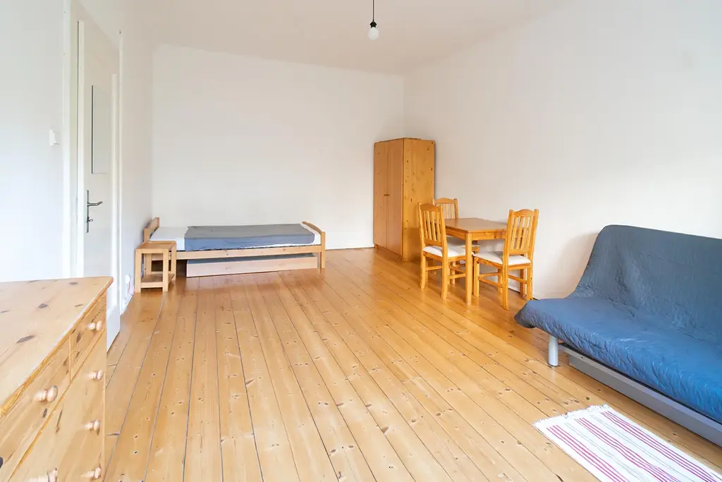 Nabízíme k dlouhodobému pronájmu byt 2+kk 45m2 blízko Vinohradské nemocnice a areálu Vinice. Byt je situován v přízemí menšího činžovního domu s orientací oken do zahrady ve vnitrobloku, zahrada není k dispozici. Byt má dva samostatné neprůchozí pokoje s dřevěnými podlahami, kuchyňku vybavenou spotřebiči – vestavný elektrický sporák, myčka, kombinovaná lednice s mrazničkou a pračka. Menší koupelna s malou vanou. V předsíni úložné prostory pod vysokým stropem. Ohřev vody a vytápění vlastním elektrokotlem, spotřebu energií si reguluje nájemce sám. Připojení k internetu – optický kabel. Klidné bydlení s dobrou dostupností do centra Metro Strašnická – zelená trasa – 7 minut pěšky, tramvaj 4 minuty pěšky. Zálohy na služby včetně zálohy na vodu jsou 750 Kč/osobu, vyúčtování dle spotřeby. Záloha na el. energii cca 2.500,-Kč/měsíčně se převádí na nájemce. Bez domácích mazlíčků. Volné ihned