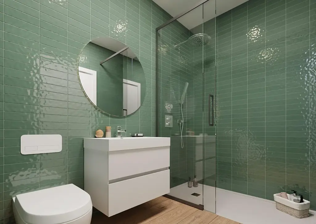 • menší plochy s umělým trávníkem a keramikou v lesklém dřevěném dekoru.