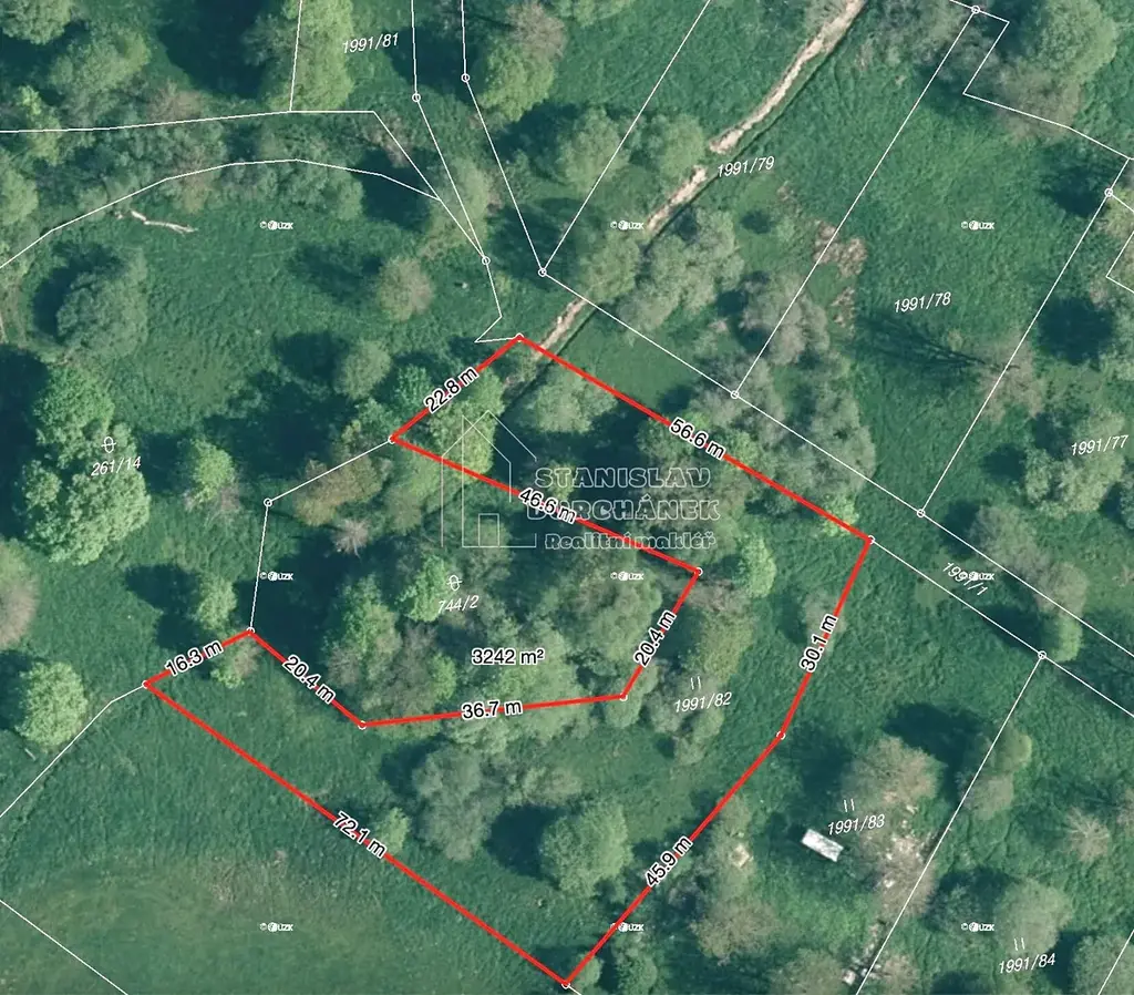 Převážná většina 2 parcel (4084 m2) je v zastavitelném území obce a v územním plánu jsou vedeny jako BX (tedy plochy bydlení se specifickým využitím). Je možná výstavba domu o 2 podlažích + obytném podkroví. Zastavitelnost pozemků je maximálně 30 %, minimální ozelenění pozemku je 60 %. V nezastavitelném území obce je pak menší část 1 parcely (845 m2).