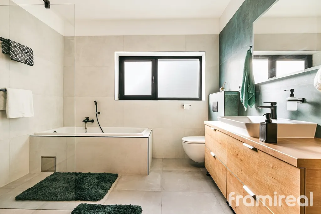 Zateplená půda slouží jako plnohodnotný úložný prostor. Okna s trojskly doplňují elektrické venkovní žaluzie, které pomáhají regulovat teplotu i soukromí v průběhu celého roku. Součástí je také kamerový systém.