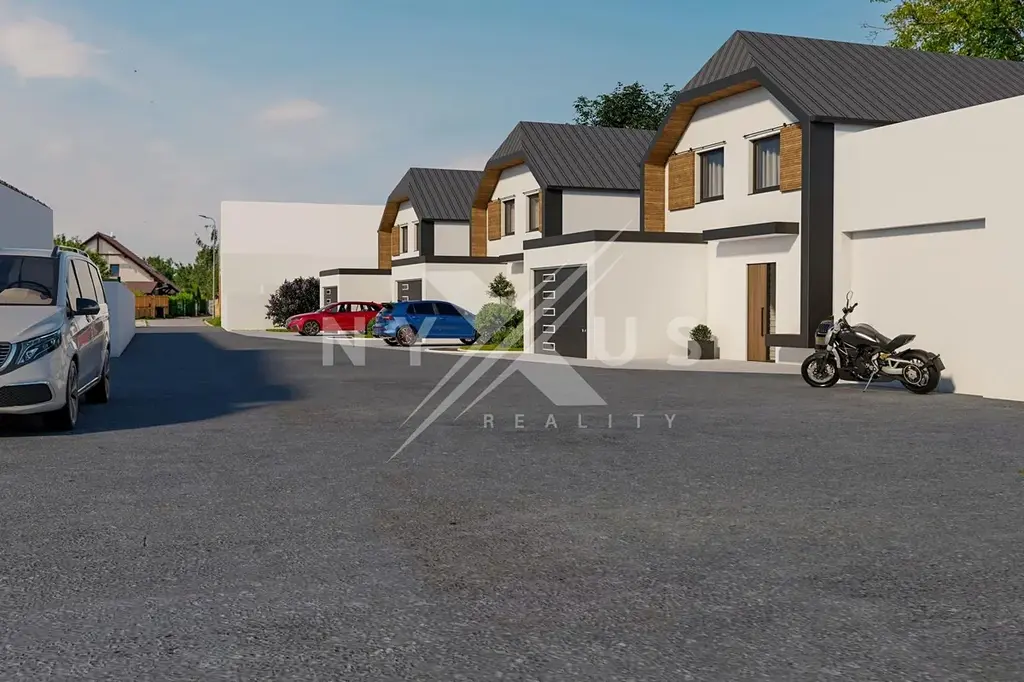 - Dvoupodlažní dům se sedlovou střechou a terasou