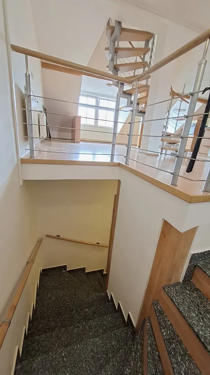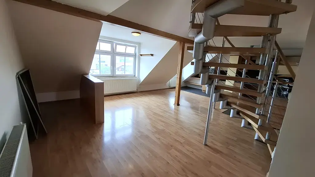 Rozlehlý mezonetový byt nabízí dostatek prostoru pro pohodlné bydlení i větších rodin, případně skupiny studentů.