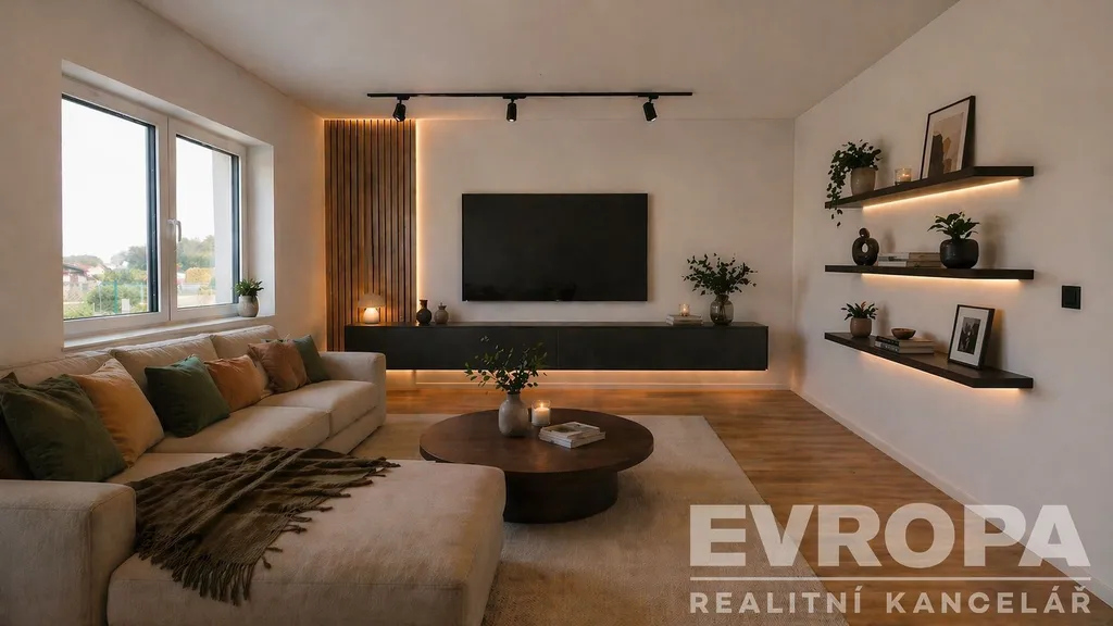 Dům je zateplen a okna jsou plastová s trojskly s přípravou na venkovní žaluzie. O vytápění a ohřev vody se stará tepelné čerpadlo. Podlahový systém přináší obojí – v zimě příjemné rovnoměrné teplo po celém domě, v létě přirozené chlazení bez klimatizace. Dům je napojen na veřejnou tlakovou kanalizaci a pro zachytávání dešťové vody slouží retenční nádrž o objemu 6 m³ – ekologické řešení, které šetří i vaši peněženku. Součástí je venkovní parkovací stání. Dům dosahuje energetické třídy B – díky tomu lze očekávat výrazně nižší provozní náklady oproti starší zástavbě, což se příznivě projeví v každoročních výdajích za energie.
