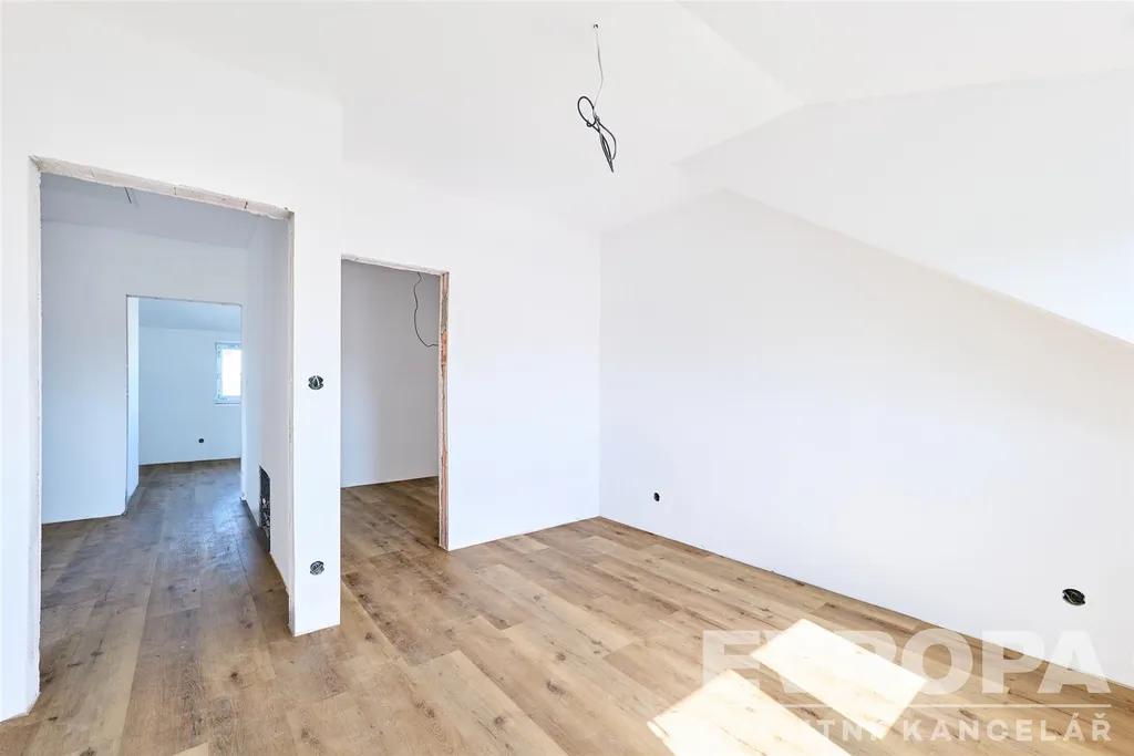 Jde o dvoupodlažní novostavbu s dispozicí 5+kk, užitnou plochou 119,24 m² a zastavěnou plochou 82 m². K jednotce náleží zahrada o ploše 347,7 m² – ideální místo pro děti i rodinné posezení. Dům je těsně před dokončením – kolaudace se očekává ve druhém čtvrtletí roku 2026, takže interiér si můžete doladit přesně podle svého vkusu a představ. Na kuchyňskou linku včetně spotřebičů mohou zájemci získat voucher v hodnotě 100 000 Kč.