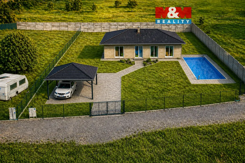 Prodej novostavby rodinného domu 4+kk, 99 m² – Dražeň- Bažantnice, Plzeň sever. Nabízíme projekt jednopodlažního úsporného rodinného domu s důrazem na funkčnost a komfort. Dispozice zahrnuje prostorný obývací pokoj s kuchyní, ložnici a další 2 pokoje, koupelnu s vanou i sprchovým koutem a WC, samostatné WC, technickou místností a šatnou. Součástí jsou dvě parkovací stání. Pozemek má 1 009 m², odpady se řeší ČOV a voda vrtem. Cena: Pozemek včetně projektu a stavebního povolení: 2 590 000 Kč Předpokládané náklady dle stavební firmy na hrubou stavbu včetně oken a dveří dle projektu činí přibližně 4 897 105 Kč . Nemovitost se nachází v klidné části obce Dražeň, v blízkosti malebné osady Bažantnice, která dodává celému místu jedinečný venkovský charakter. Lokalita je typická minimální zástavbou, okolní přírodou a příjemnou atmosférou, kterou ocení každý, kdo hledá klid a soukromí přitom je jen 23 minut od Plzně. Pokud Vás nabídka zaujala, neváhejte nás kontaktovat.