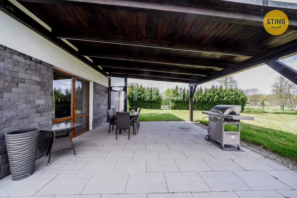 Samotný dům nepotřebuje žádných dalších investic, jelikož je vystavěn v nadstandardu, z cihel Porotherm a zateplen 17cm šedým EPS. Výplně jsou řešeny plastovými okny s trojskly. Střecha je pokryta kvalitní plechovou krytinou Gerard, která imituje profilovanou tašku a vyniká dlouhou životností, kdy samozřejmostí je pak zateplení střechy. Garážové vrata a vjezdová brána se ovládají dálkově a celý objekt je hlídaný bezpečnostním systémem Jablotron. Obytná část (162m2) je vytápěna podlahovým teplovodním topením, které je napojeno na plynový kondenzační kotel, který zároveň ohřívá teplou vodu. Dalším zdrojem tepla je krbová vložka s obestavbou a rozvodem do všech pokojů. Celkové náklady se pohybují kolem 3800Kč/měsíc. Na nemovitost nebyla v minulosti poskytnuta žádná dotace a střecha, která je z části orientovaná na jih, vybízí k montáží FVE, což by výrazně snížilo měsíční náklady na bydlení.