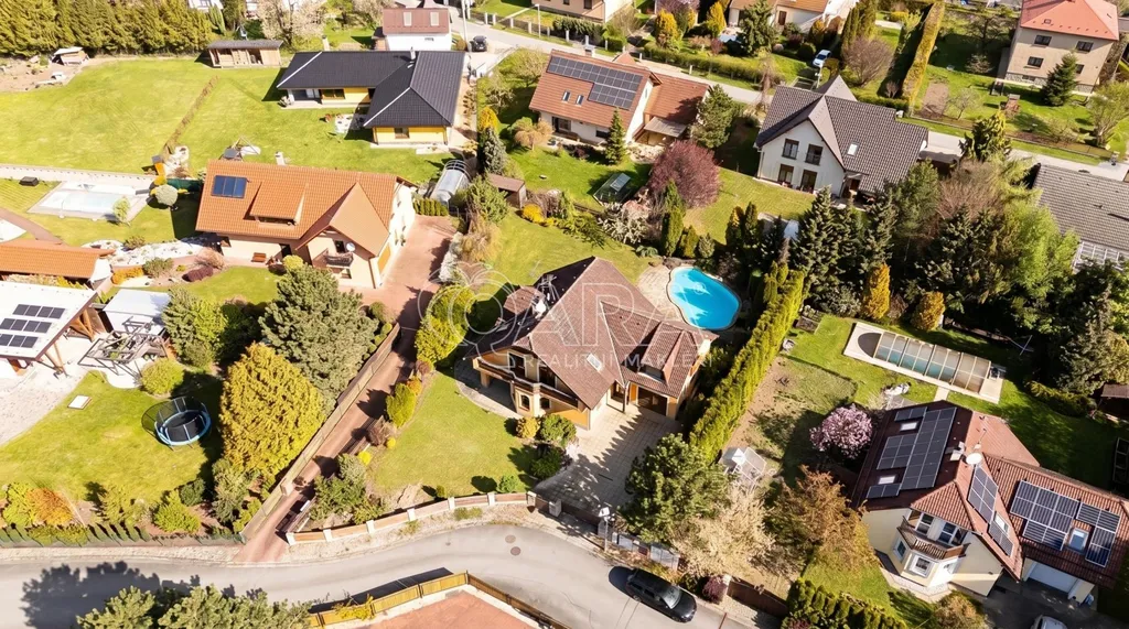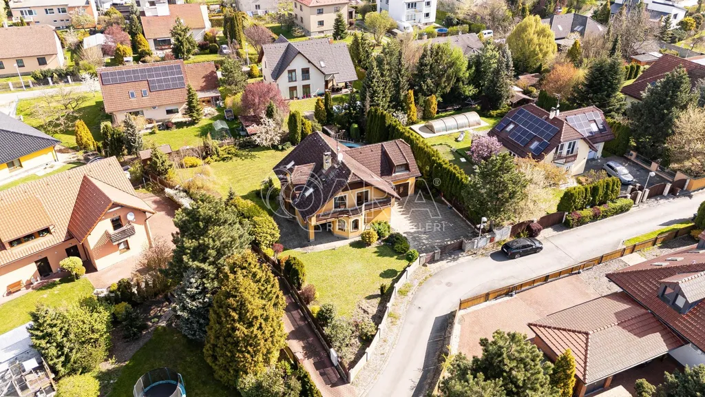 Dům stojí v klidné zástavbě rodinných domů, kde má bydlení svůj přirozený řád a tempo. Příjezd je po asfaltové komunikaci, vstup na pozemek přes dálkově ovládanou bránu. Parkování je řešené v garáži nebo přímo před domem, kde je dostatek místa pro více aut. Samozřejmostí je napojení na všechny inženýrské sítě, tedy kanalizaci, vodovod, plyn i elektřinu.
