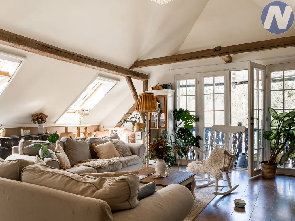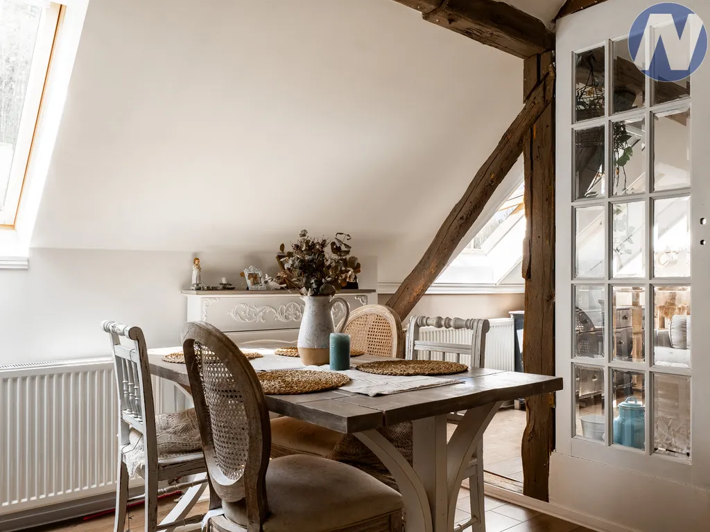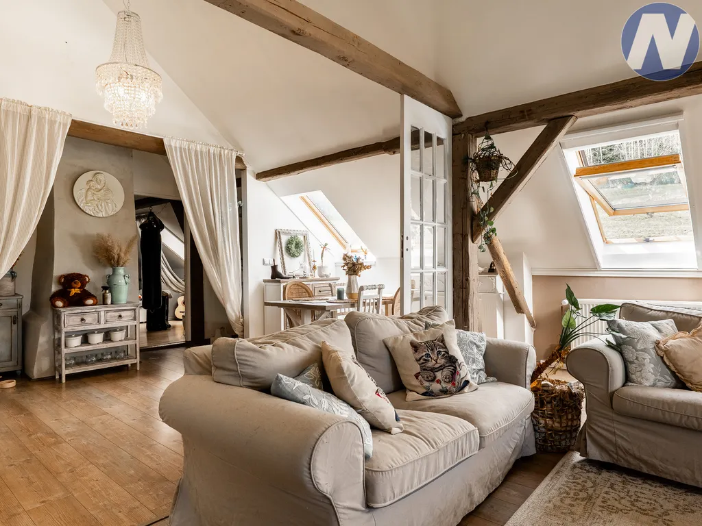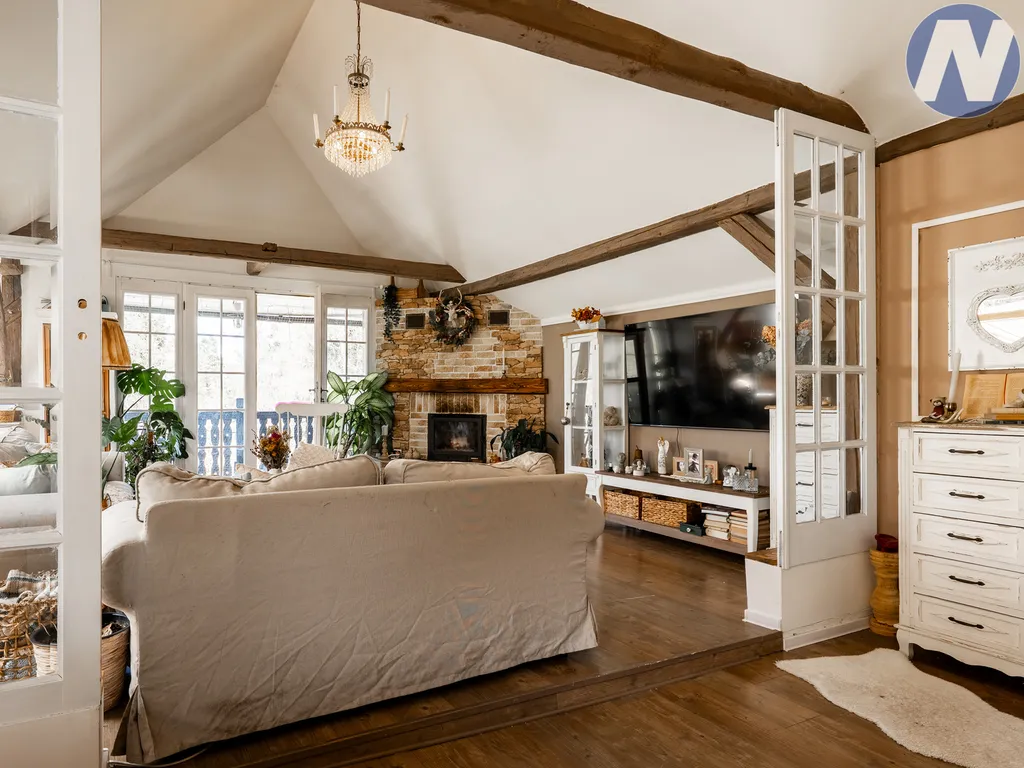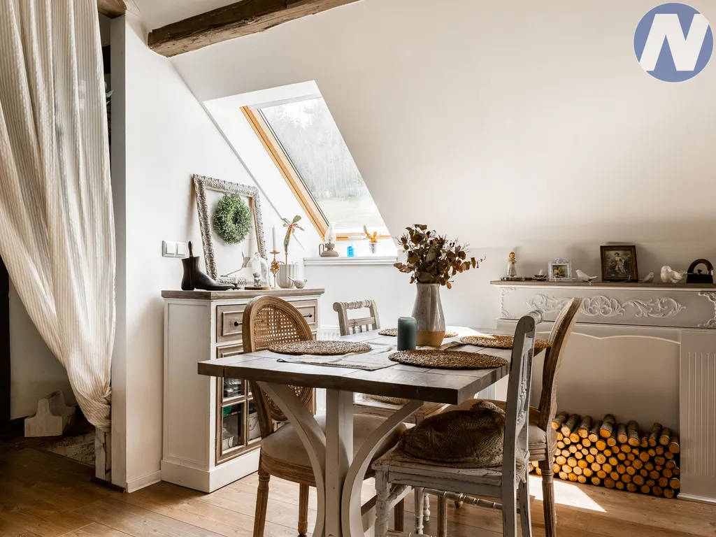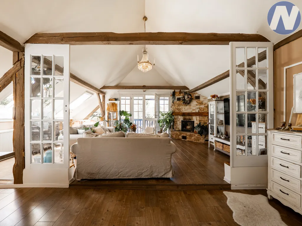 Nemovitost prošla rekonstrukcí a dnešní podoba interiéru působí velmi promyšleně, útulně a zároveň nadčasově. Kombinace přiznaných trámů, dřeva, světlých tónů, pečlivě laděných detailů a otevřeného prostoru vytváří prostředí, které má vlastní charakter a nepůsobí tuctově.