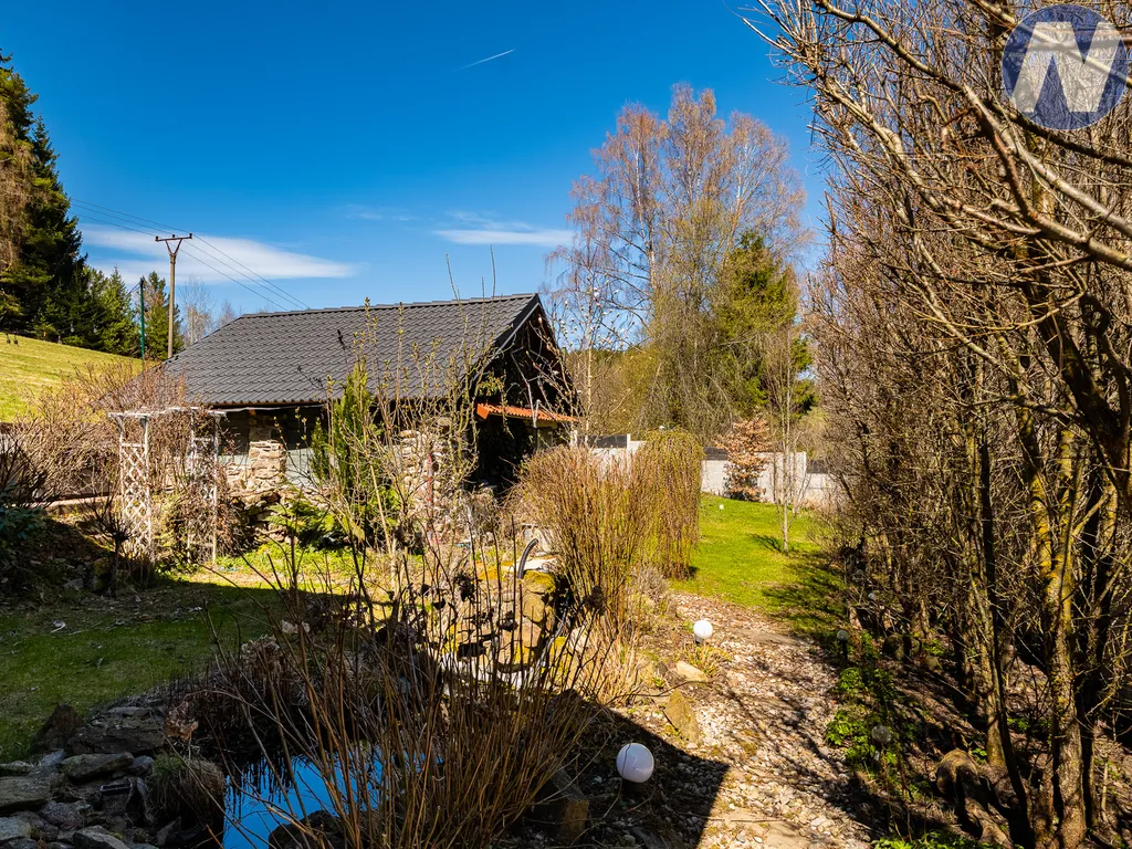 Je fér rovnou zmínit i to, že dům stojí u komunikace směrem na Volary. Nejde tedy o samotu schovanou hluboko mimo okolní dění. Na druhou stranu právě tato poloha přináší pohodlný příjezd a dobrou dostupnost, což může být pro řadu zájemců naopak praktickou výhodou.