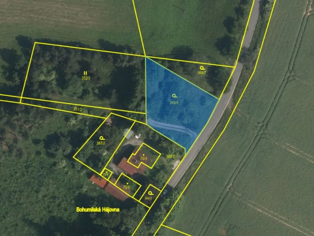 Jedná se o pozemky o celkové výměře 21 589 m2. Jedná se o pozemky vedené jako zahrada, ostatní komunikace, trvalé porosty, vodní plochy a část rybníku. Pozemek zahrady - skutečný stav: Pozemek zahrady se nachází vedle objektu hájovny, není oplocen, a netvoří jednotný celek s hájovnou. Pozemek je zarostlý, neudržovaný, uprostřed pozemku vede nezpevněná komunikace do lesa. Pozemek ostatní plochy (ostatní komunikace), se nachází mimo zastavěnou část obce a je využívána jako nezpevněná polní cesta. Pozemky označeny jako vodní plocha jsou ve skutečnosti zamokřené plochy podél potoka. Pozemky vodní plocha, rybník jsou dva pozemky, které nejsou využívány k rekreačním účelům, ani k chovu ryb.