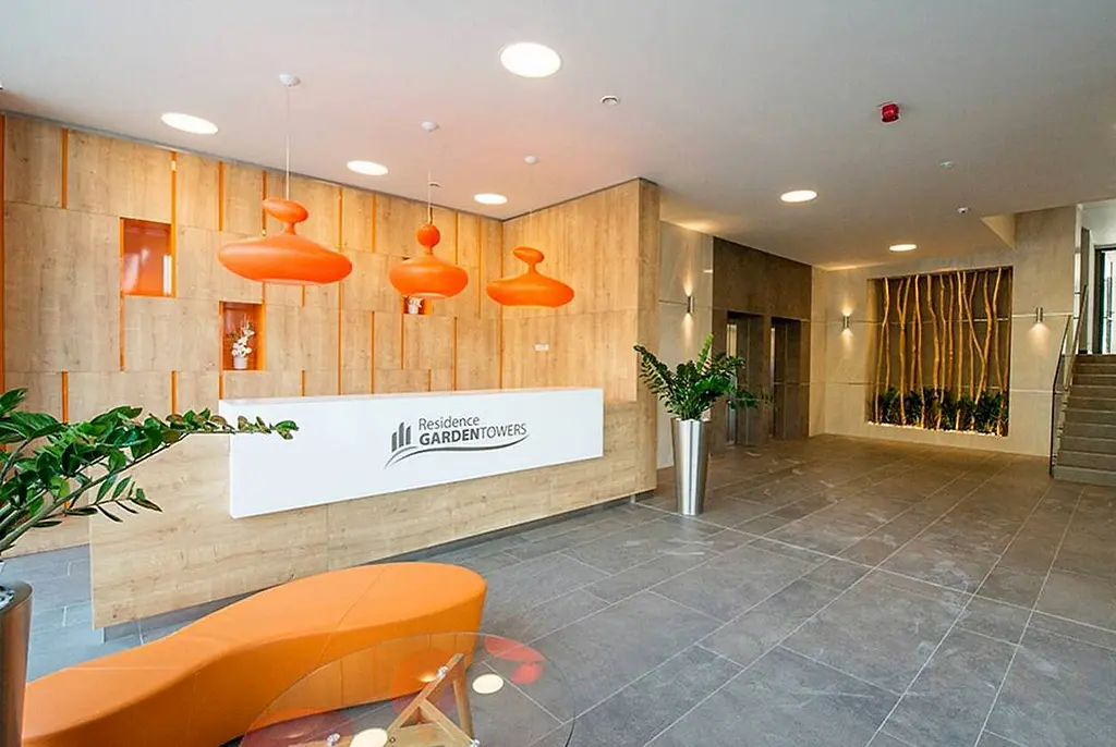 The residence has a reception, landscaped courtyard, and terraces with benches for a nice evening time spending.