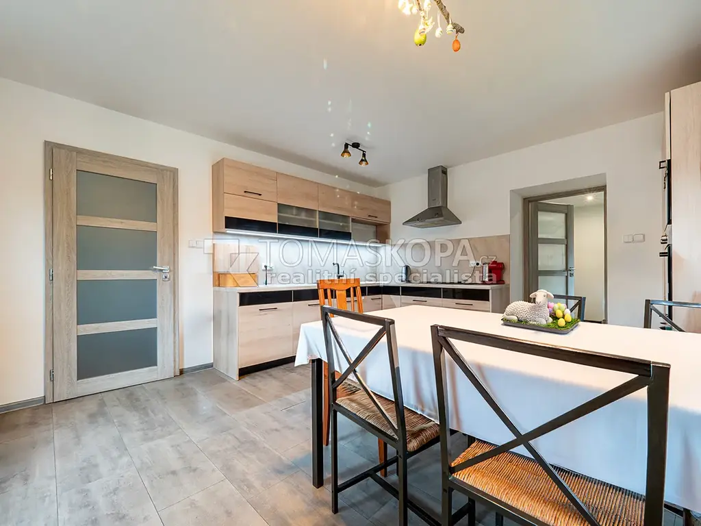 Dům o dispozici 5+2 a podlahové ploše 157 m² prošel citlivou rekonstrukcí interiéru. Nabízí nové rozvody, podlahy i dveře a představuje ideální řešení pro rodinu, která hledá dostatek prostoru a soukromí v přírodě, ale nechce platit vysoké náklady typické pro bydlení v Praze.