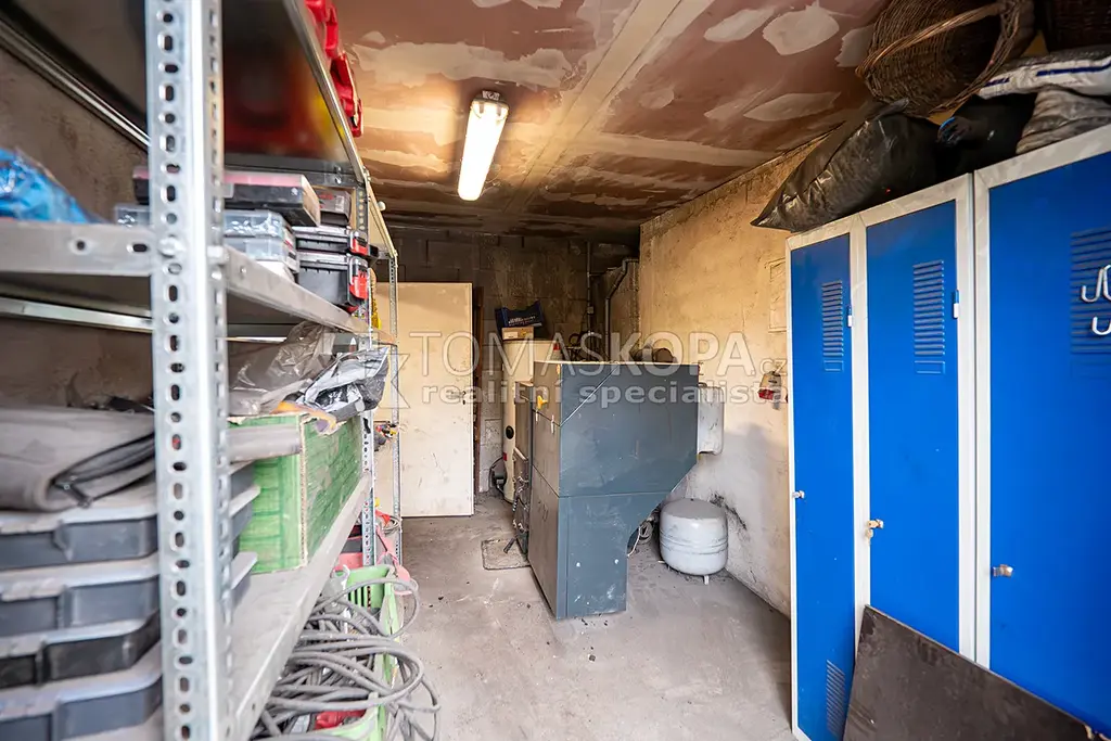 Součástí je také velká garáž a kůlna (78 m²), které poskytují dostatek prostoru pro parkování, dílnu i skladování.