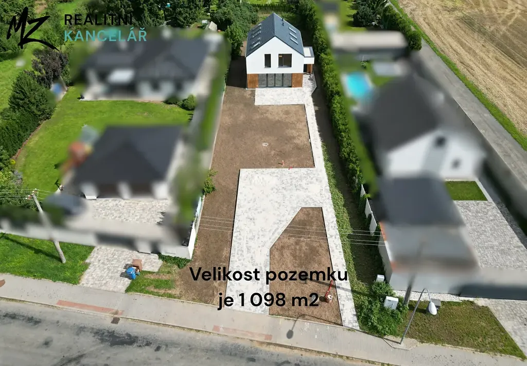 Stylová dvoupodlažní dřevostavba 5+KK se nachází na pozemku o výměře 1 098 m², zastavěná plocha domu je 94,9 m² a je připravena ihned k předání.