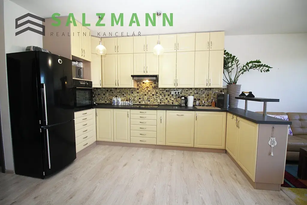 - obývací pokoj s kuchyní se vstupem na zahradu – kuchyňská linka s varnou deskou a digestoří, myčka, trouba horkovzdušná