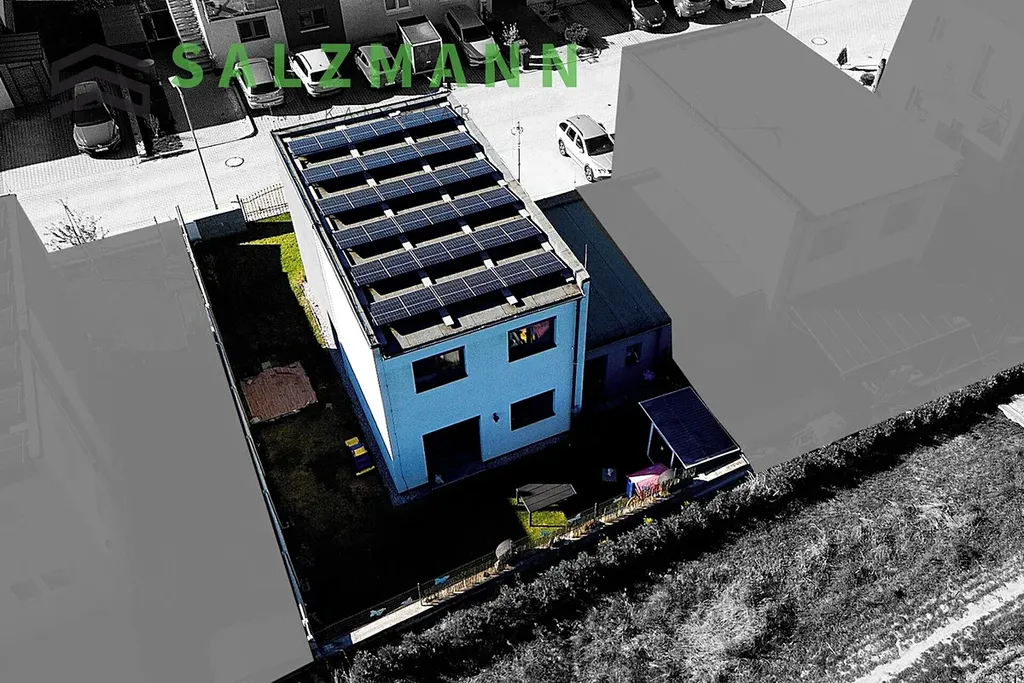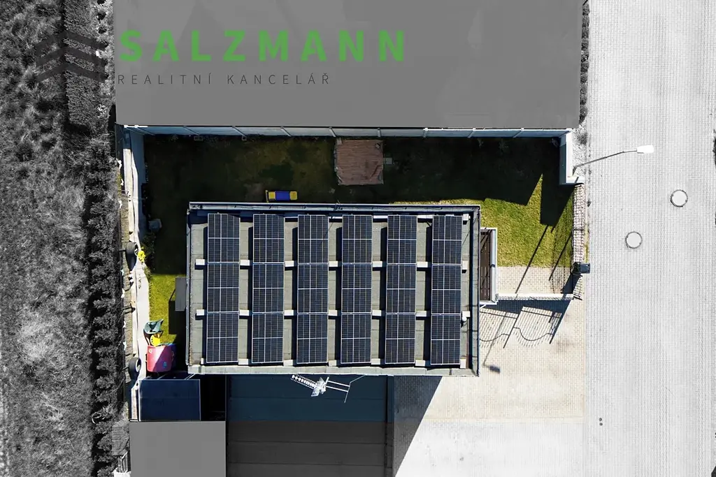 Na střeše je fotovoltaický systém (7,2 kWp) se solárními panely a 4 bateriemi (10,2kWh). Součástí pozemku je garáž s elektrickým ovládáním, tři parkovací stání a zahradní domek.
