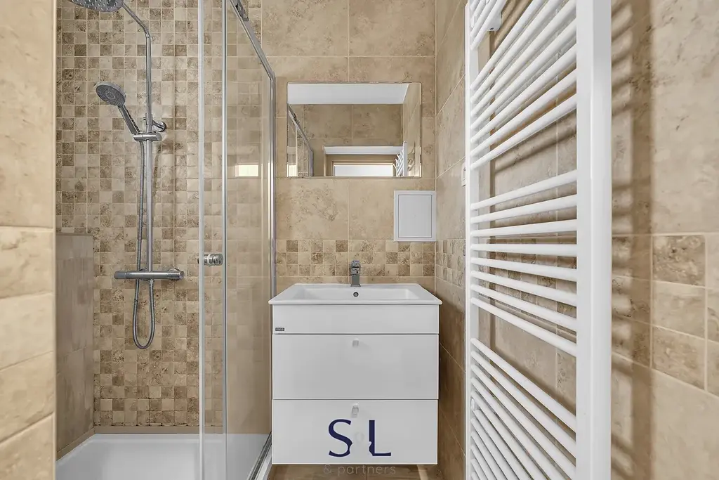Koupelna je vybavena sprchovým koutem, toaleta je samostatná – praktické řešení pro každodenní fungování.