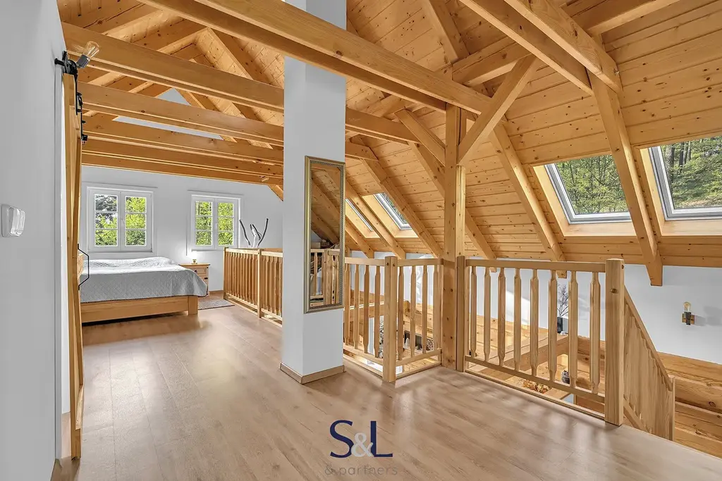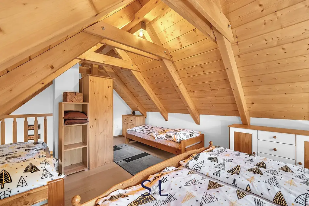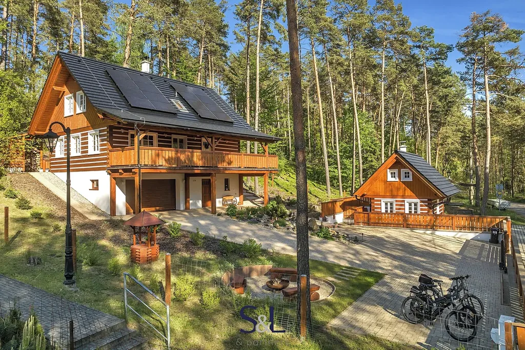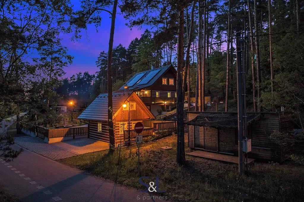 Hledáte místo, které spojuje tradiční řemeslné zpracování s moderní technologií a úsporným provozem? Právě jste ho našli. Nabízíme vám pečlivě vystavěnou novostavbu s roubeným přízemím z masivních trámů, obytným podkrovím a zděným suterénem. Nemovitost se nachází v malebné části obce Hamr na Jezeře a je doplněna o menší, aktuálně krátkodobě pronajímanou roubenku s názvem „Evelinka“. Od počátku výstavby bylo cílem vytvořit stabilní a komfortní zázemí pro rekreaci i trvalé bydlení. Díky promyšlenému řešení a druhé roubené stavbě nabízí nemovitost nejen klid v přírodě, ale i investiční příležitost.