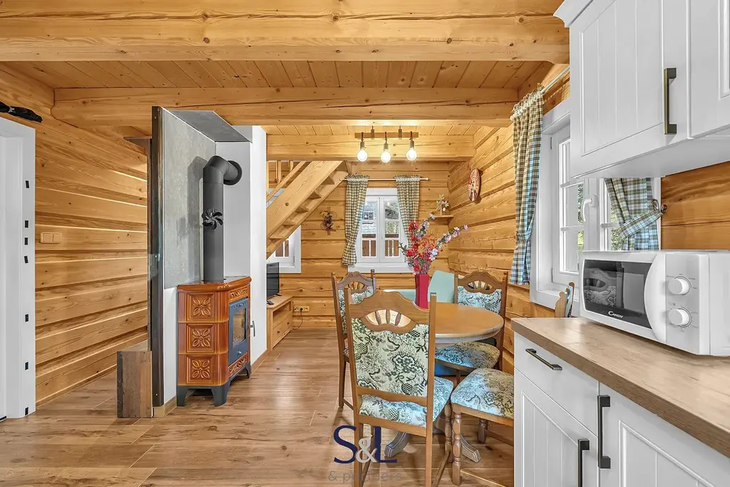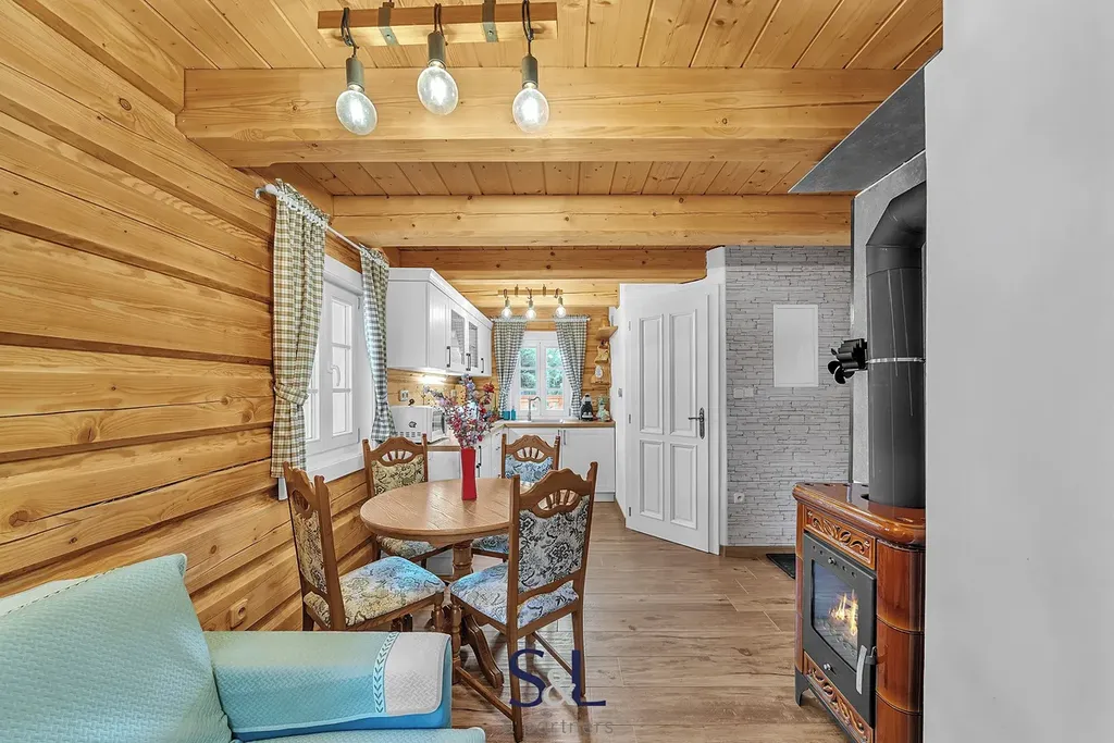 Na pozemku se nachází také menší samostatná roubenka, zkolaudovaná jako jiná stavba, která je od května 2023 úspěšně krátkodobě pronajímána. Hlavním zdrojem tepla je elektrické podlahové topení Hevolta, které doplňují stylová kamna na dřevo – ty dodávají nejen dostatek tepla, ale i útulnou atmosféru zejména během chladnějších dnů. Ohřev vody zajišťuje elektrický bojler.
