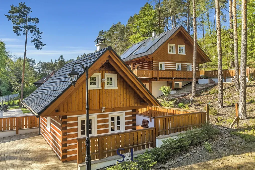 Dvě roubené novostavby na jednom pozemku s fotovoltaikou – úsporné bydlení i investice v srdci přírody, na pomezí Ralské pahorkatiny a Lužických hor.
