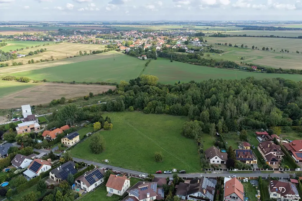 Jedna z největších výhod je rychlá dostupnost na okraj Prahy, takže je pozemek skvělý i pro každodenní dojíždění do práce, školy nebo za službami. Do obce navíc zajíždí Pražská MHD, takže se dá pohodlně fungovat i bez auta.