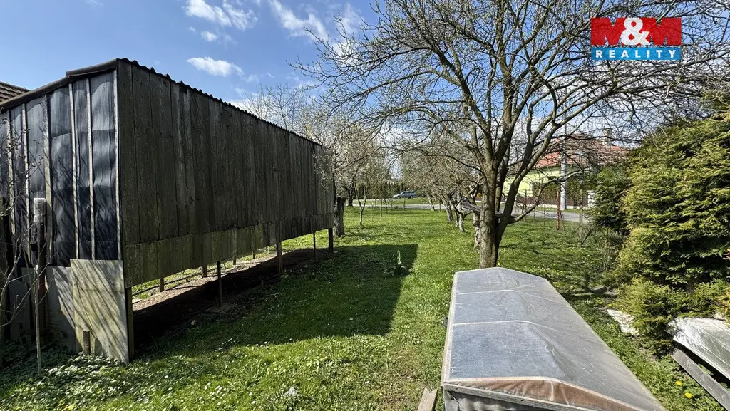 Součástí jsou dvě garáže, hospodářské budovy, studna a udržovaná zahrada.