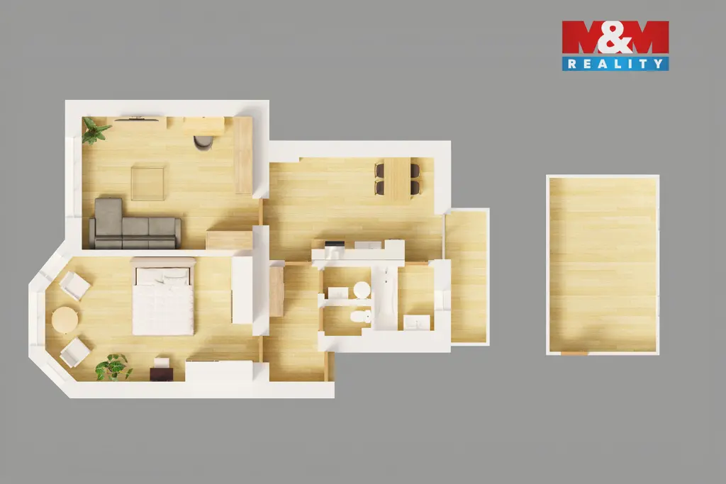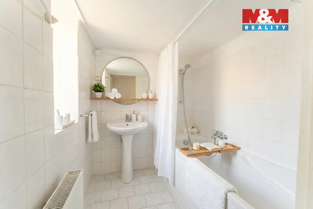 Byt je v původním, ale udržovaném stavu s plastovými okny, samostatným WC a praktickou dispozicí - samostatná velká ložnice se zaoblenou čelní stěnou, obývací pokoj a samostatná kuchyně s výškou stropů 295 cm. Je zde tedy možné vybudovat i další spací patro. Velkou přidanou hodnotou je půdní prostor o velikosti 16 m², který lze využít jako sklad nebo pracovnu.