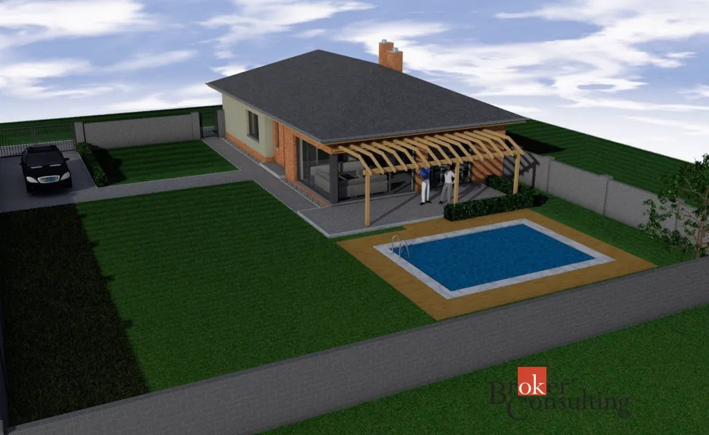 K pozemku je navíc k dispozici hotová studie rodinného domu o dispozici 4+kk, takže máte jasnou představu, jak může vaše budoucí bydlení vypadat, a můžete se odrazit bez zbytečného vymýšlení od nuly.