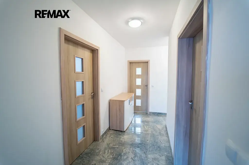 Společná chodba pro dva byty vedle sebe byt č. 2 o velikosti 2+kk/cca 34,37 m2 s koupelnou se sprchovým koutem a WC, byt má vlastní bojler, el. hodiny, je vybaven spotřebiči (lednice, el. sporák a trouba, digestoř, pračka, mikrovlnná trouba a nábytek).