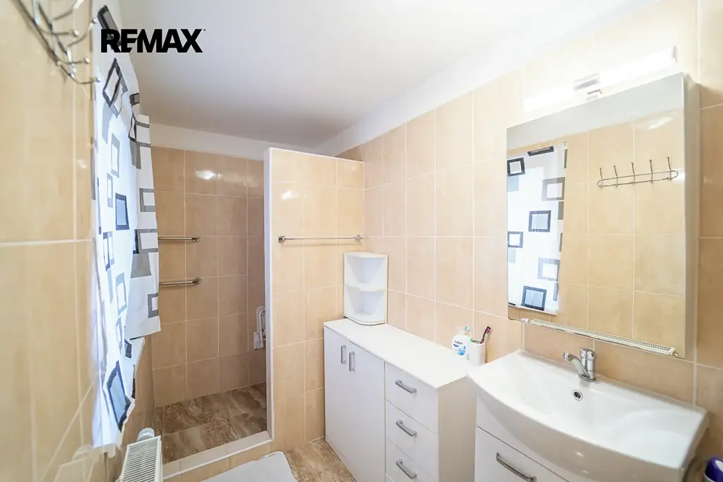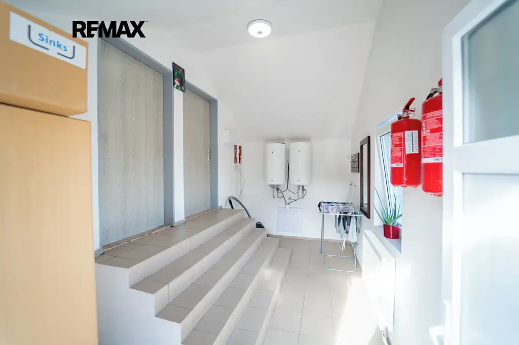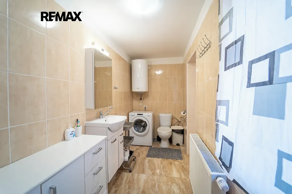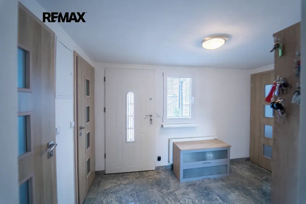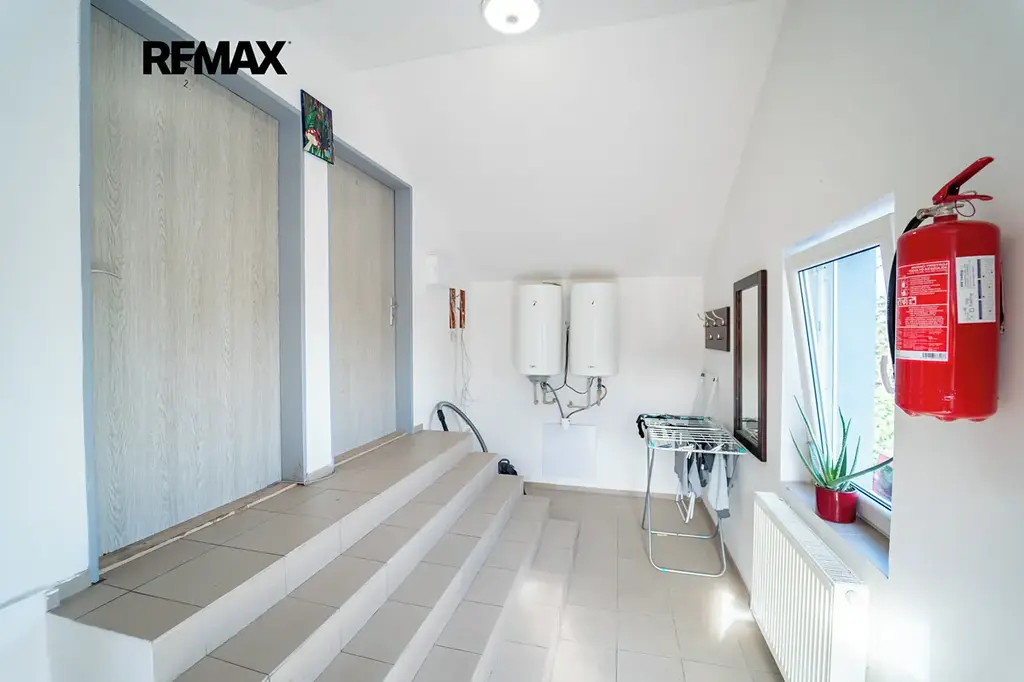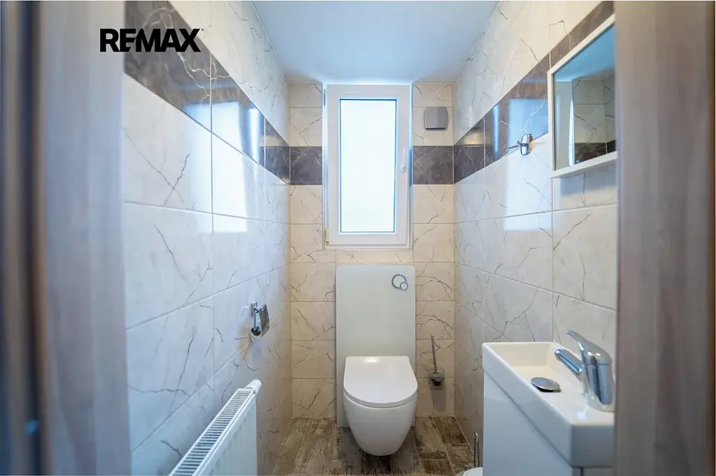 Dům je částečně podsklepený s komorou na potraviny, technickou místností s pračkou, sušičkou a bojlerem zn. DRAŽICE, 2 x pokoj a jedním pokojem pro hosty se samostatným vchodem z nádvoří. Obývací pokoj s oknem do ulice je součástí kuchyně s novou kuchyňskou linkou se spotřebiči, vše součástí domu a ceny. Spotřebiče: americká lednice zn. BEKO, horkovzdušná trouba zn. AEG, mikrovlnná trouba zn. Concept, sklokeramická deska zn. AEG, digestoř zn. Concept. Koupelna s rohovou vanou a sprchovým koutem, WC je samostatné s malým umyvadlem. Podlahy domu jsou plovoucí a kremnická dlažba s podlahovým topením v koupelně a v ostatních místnosti jsou osazeny radiátory.