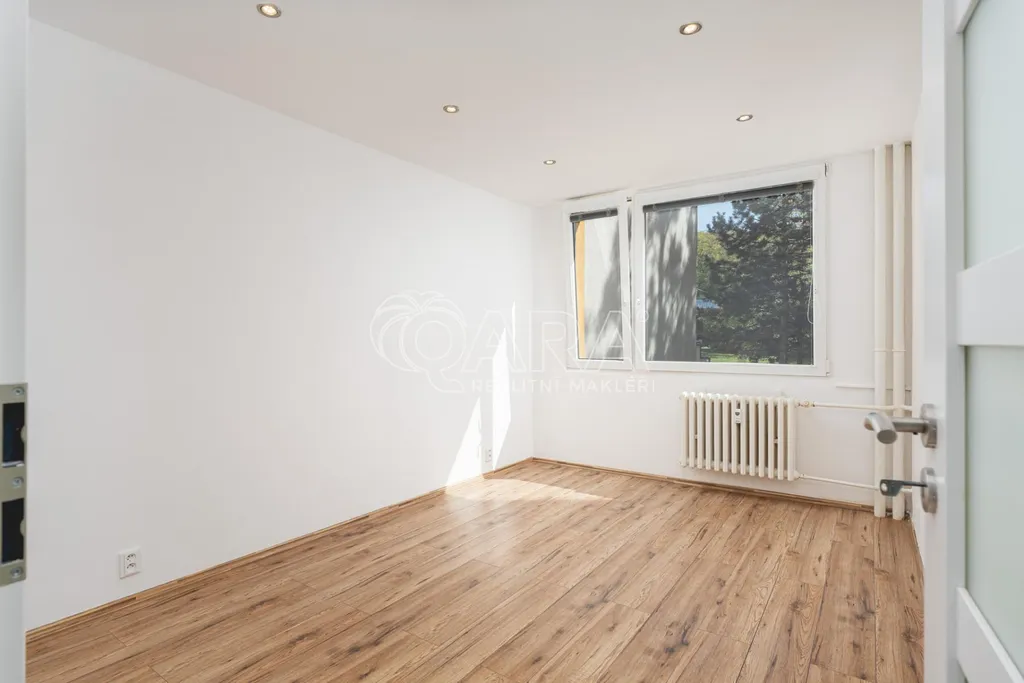 Nabízíme k pronájmu světlý a velmi prostorný byt s dispozicí 3+kk se zasklenou lodžií. Nachází se v 1. nadzemním podlaží zatepleného a kompletně revitalizovaného panelového domu s výtahem v klidné a oblíbené části Prahy 4 Komořany, ulice Za Sídlištěm.