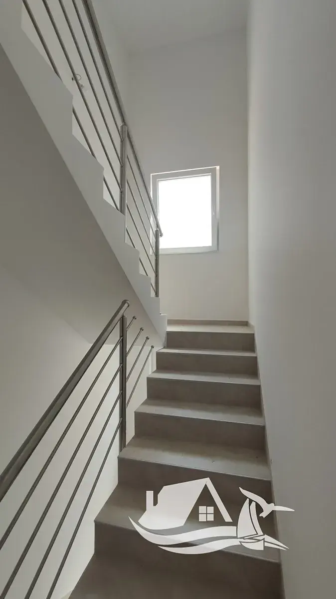 V klidné nové rezidenční části města Vodice se na mírném návrší nachází tento výjimečný moderní dvojdům, který zaujme promyšleným konceptem, nádhernými výhledy na moře a možností vícegeneračního či investičního využití. Nemovitost je vzdálena přibližně 700 metrů od pláže a pouze 900 metrů od centra města, takže nabízí soukromí a klid bez toho, aby vás odřízla od života, restaurací, obchodů a promenády.