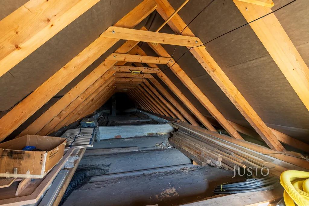 Prostorný půdní prostor je ideální pro umístění dalšího bytu nebo aspoň pár místností.
