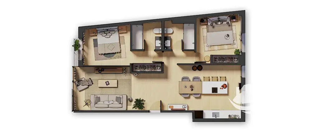 Tento apartmán je navržen tak, aby poskytoval příjemné světlo, vzdušnost a praktické uspořádání pro každodenní život. Otevřený obývací prostor s kuchyní vytváří místo, kde se přirozeně potkává pohodlí s moderním stylem a kde vznikají hezké společné chvíle.