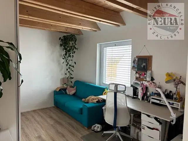 přízemí: hala, koupelna s WC, technická místnost, pracovna 11,2 m2, obývací pokoj s kuchyňským koutem 42,4 m2, kuchyňská linka včetně spotřebičů (lednice, myčka),