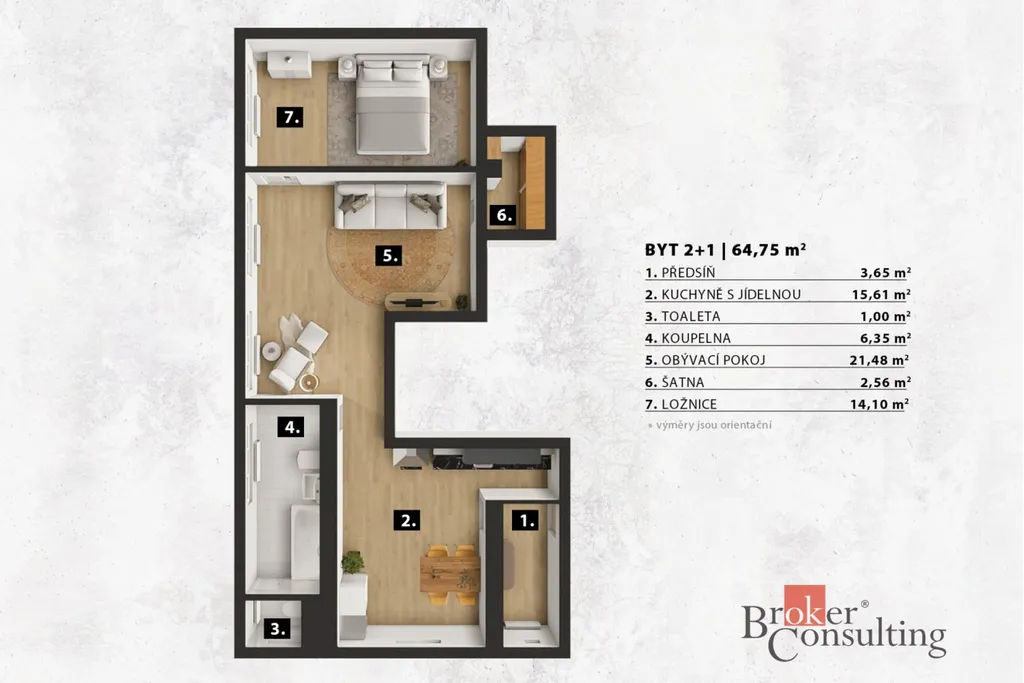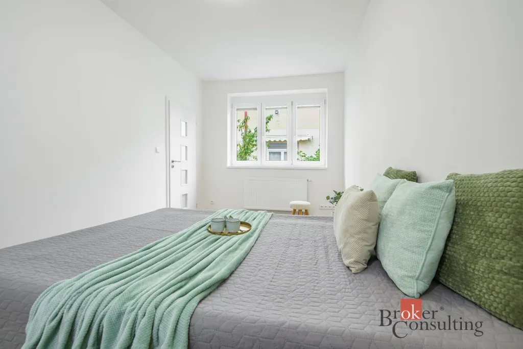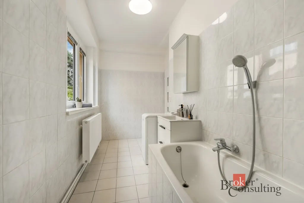 Velkou výhodou je také praktická šatna o velikosti 2,56 m², která poskytuje dostatek úložného prostoru a pomáhá udržet domov přehledný a útulný. Komfort bydlení dále zvyšuje nezvykle prostorná koupelna o velikosti 6,35 m² a samostatná toaleta. Byt se nachází v menším cihlovém domě v klidné ulici, což zajišťuje příjemné bydlení s větším soukromím a komornější atmosférou.