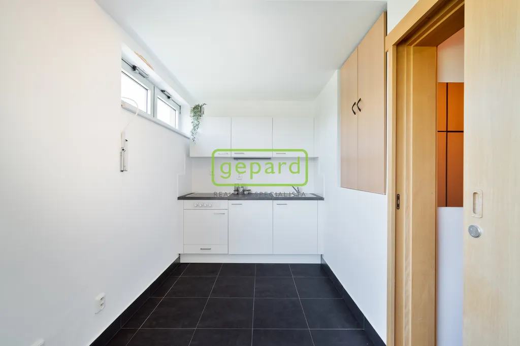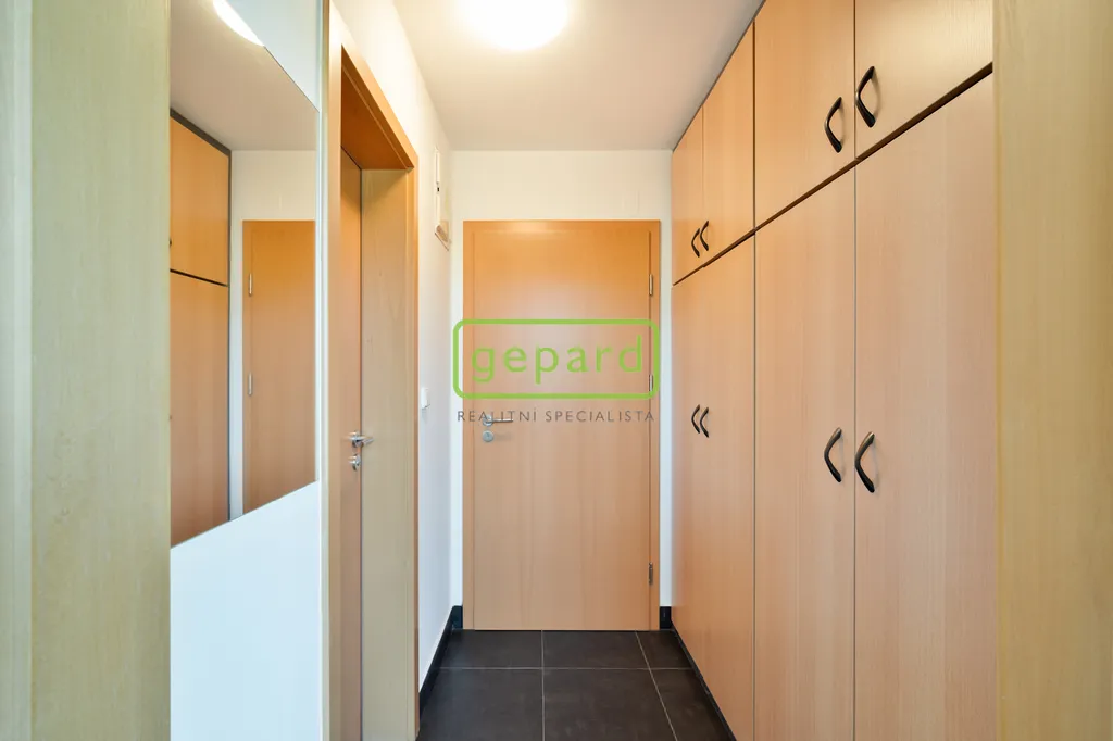 Byt je částečně vybaven a obsahuje praktické vestavěné skříně v předsíni, které nabízejí dostatek úložného prostoru. Součástí bytu je také kuchyňská linka s elektrickou varnou deskou a vestavěnou lednicí. V bytě je příjemná atmosféra a díky orientaci na západ se zde skvěle relaxuje po náročném dni.