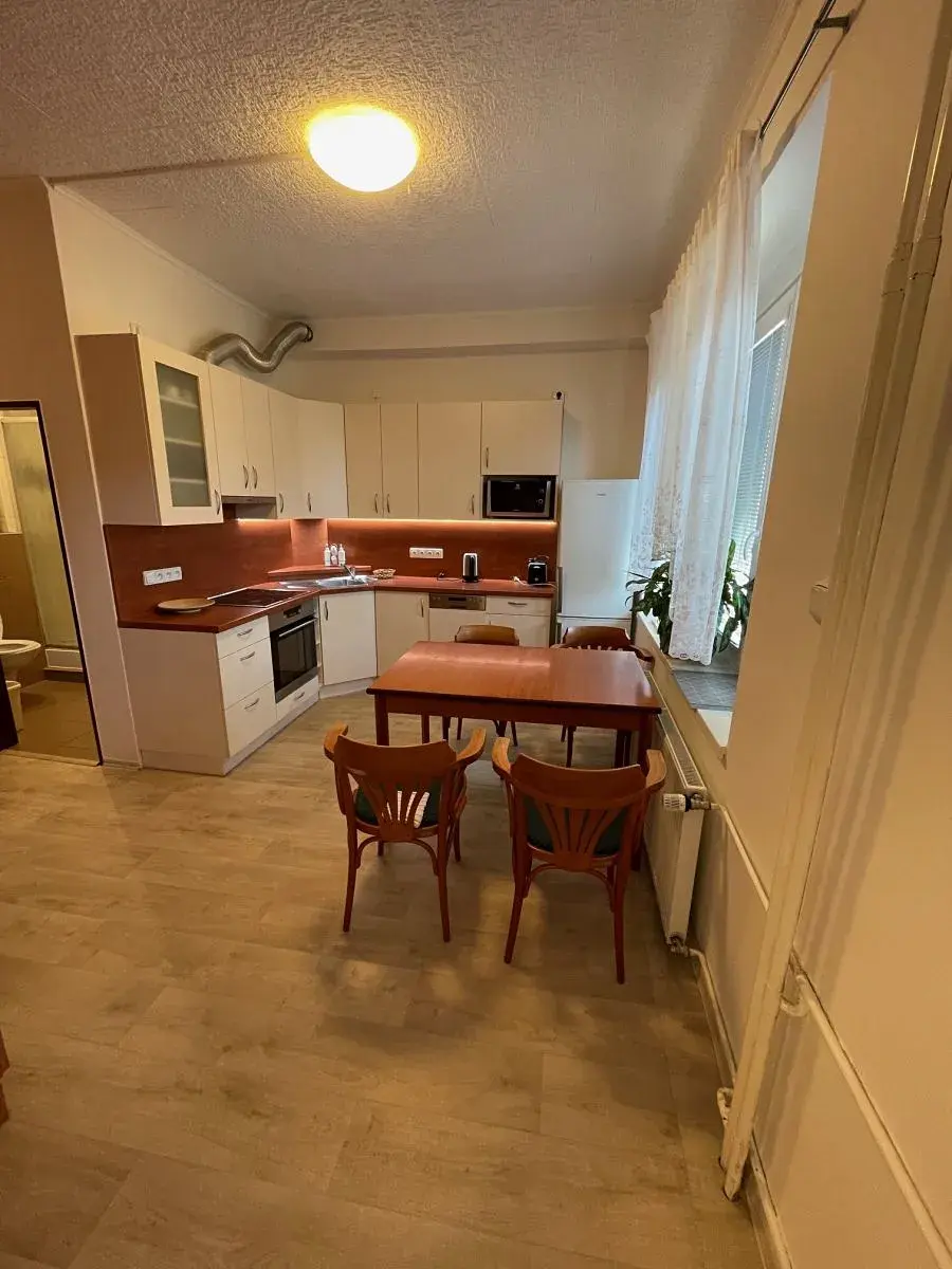 zařízený: k. linka vč. sporáku s troubou, sklokeramickou deskou, myčka,