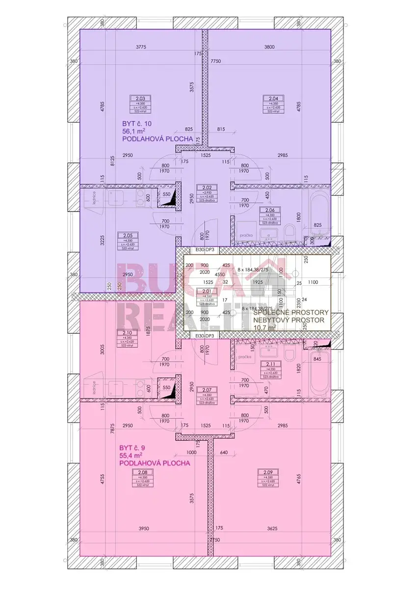 Byt o dispozici 2+1 a výměře 55.5 m2 s terasou o výměře 56 m2 se skládá́ z prostorné́ chodby, obývacího pokoje, ložnice, koupelny s WC a kuchyně, která je vybavena moderními vestavenými spotřebiči (sklokeramická́ deska, trouba, digestoř̌). K bytu je možnost pronajmout parkovací stání přímo u domu, které je hlídané kamerovým systémem.