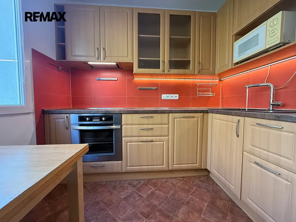 Byt nabízí praktické dispoziční řešení s neprůchozími pokoji. K dispozici je prostorná vstupní chodba, kuchyně s jídelním stolem, obývací pokoj, ložnice, dětský pokoj, koupelna a samostatná toaleta, k dispozici je také vlastní místnost v mezipatře která slouží jako úložný prostor. Byt zůstává vybaven kuchyňskou linkou včetně indukční desky, horkovzdušné trouby, mikrovlné trouby, ledničky a pračky. Parkování je dostupné přímo před domem. Veškerá občanská vybavenost je samozřejmostí včetně pár minut chůze vzdáleného dopravního spojení tramvaje číslo 4, nebo autobusu číslo 22, 30, 32, 29. Dálnice D5 je dostupná do 5 minut jízdy autem.