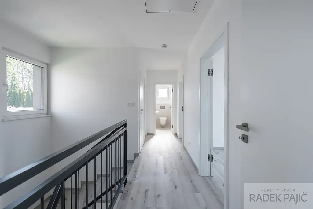 Samotná stavba byla realizována s důrazem na kvalitu a dlouhou životnost. Nosné zdivo z Porothermu, železobetonový monolitický strop i schodiště a kvalitní tepelná izolace zajišťují stabilitu, komfort i energetickou úspornost. (PENB "B") Střešní konstrukce s foukanou izolací o tloušťce 300 mm pomáhá držet příjemné klima v domě po celý rok. Interiér působí moderně a čistě – bezfalcové dveře, lepené vinylové podlahy v kombinaci s dlažbou a vkusně řešené koupelny s vybavením značek Laufen, Hansa, Concept a Dřevojas vytvářejí nadstandardní, ale zároveň velmi praktické bydlení.