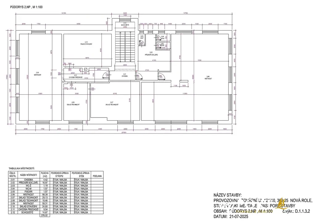 • 2. NP (276 m²): Reprezentativní kancelářské prostory kombinované s dalšími skladovacími kapacitami a zázemím pro zaměstnance.