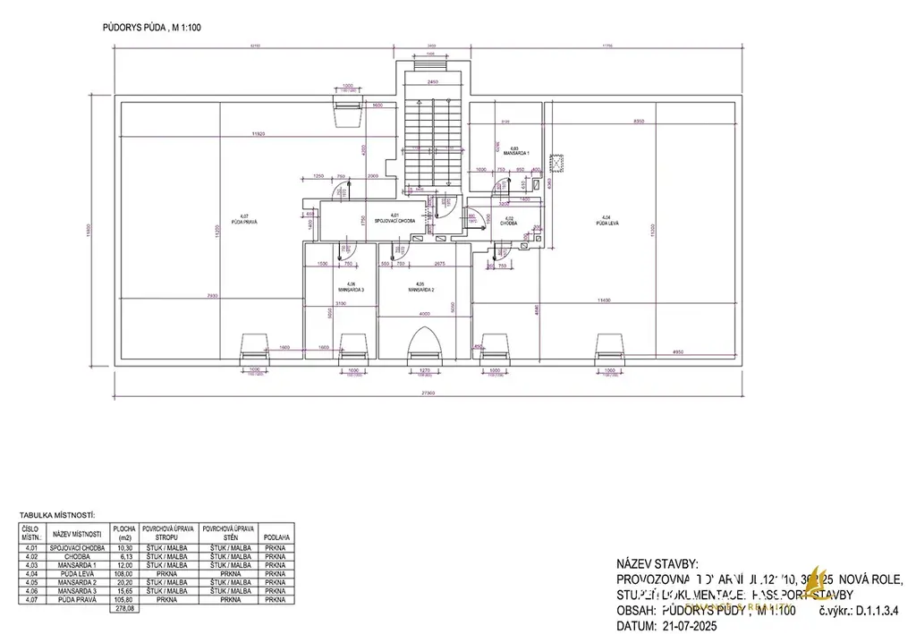 • Podkroví (278 m²): Čistý a suchý prostor s vysokým potenciálem. Lze využít jako další sklady, nebo transformovat na bytové jednotky.