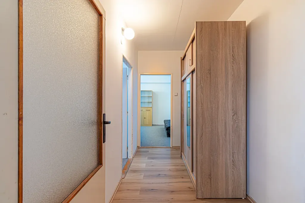Moc ráda vám nabízím vám byt k pronájmu v 7. patře panelového domu. Byt je dispozičně řešen jako 3+1 o celkové rozloze (vč. balkonů a sklepa) 86,27 m2. Je vybavený veškerým nábytkem se spoustou úložného prostoru, ledničkou, pračkou a nádobím. Podlahová krytina plovoucí podlaha, lino, koberce, dlažba. K bytu patří dva zasklené balkony s krásným výhledem na město. V obývacím pokoje a kuchyni jsou venkovní žaluzie pro regulaci slunečního světla a soukromí. V ostatních pokojích vnitřní okenní žaluzie. K bytu náleží sklepní koje. Veškerá občanská vybavenost je na dosah ruky.