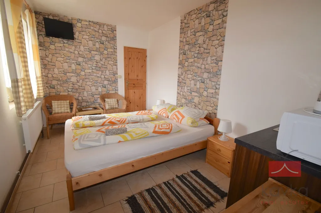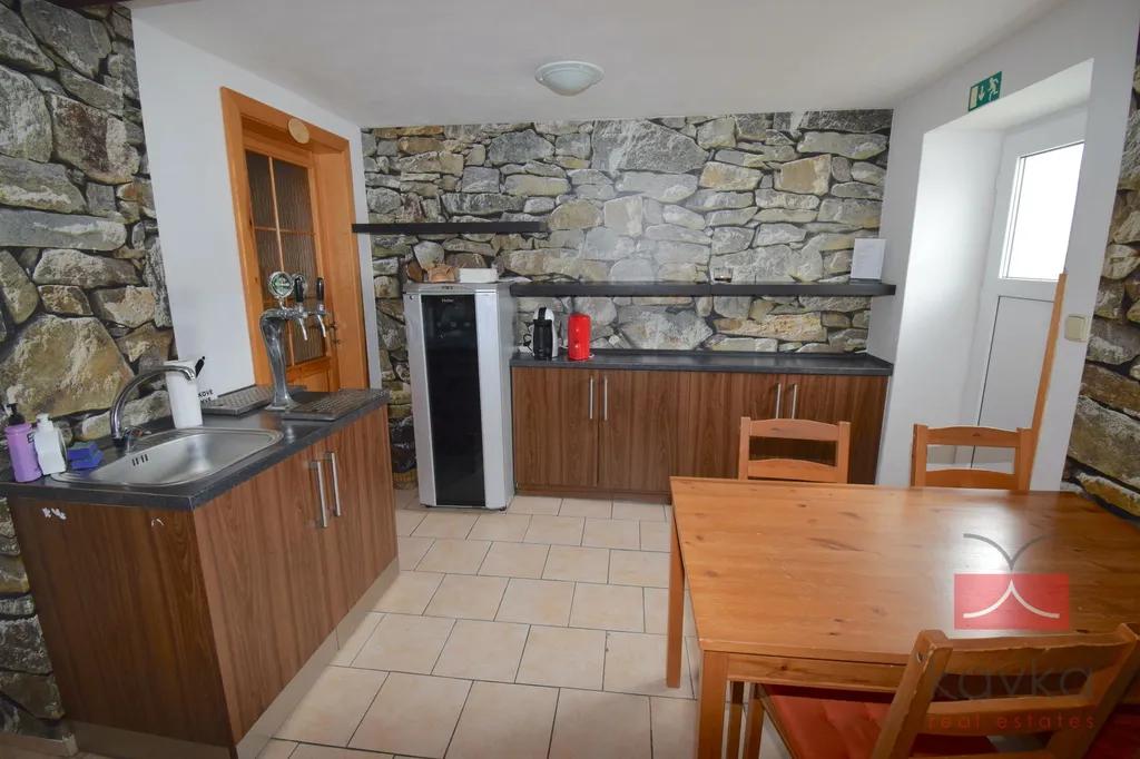 KAVKA REAL ESTATES Vám exkluzivně zprostředkují k prodeji rodinný dům 8+kk o obytné ploše 208,5 m2 na pozemku o celkové výměře 850 m2 v klidné lokalitě obce Oudoleň, okres Havlíčkův Brod. Dispoziční členění: přízemí – vstupní chodba s kuchyňkou, pokoj č.1 + sociální zázemí (WC + sprchový kout), pokoj č.2 + sociální zázemí (WC + sprchový kout), vstupní chodba, WC, chodba, pokoj č.3 + sociální zázemí (WC + sprchový kout), kuchyň + obývací pokoj se vstupem na zahradu, vstupní chodba, chodba, koupelna + WC (sprchový kout), Kuchyň s jídelnou, obývací pokoj se vstupem na zahradu, pokoj č.4, vstupní chodba, pokoj č.5 s kuchyňkou + sociální zázemí (WC + sprchový kout), vstupní chodba v přízemí, sociální zázemí (WC + sprchový kout), v podkroví pokoj č.6, v přízemí je k dispozici wellness (vířivá vana a sauna s odpočívárnou), vstupní chodba s kuchyňkou, sociální zázemí (WC + sprchový kout), pokoj č. 7. Z inženýrských sítí je k dispozici: voda, elektřina 230, 400 V, odpady - vlastní jímka a plyn. Vytápění rodinného domu a ohřev vody je řešeno plynovým kotlem. RD je v původním stavu - v roce 2014 proběhla rekonstrukce vnitřních prostor. RD se prodává kompletně zařízený: venkovní vířivka, vnitřní vířivka se saunou, dřevěné posezení, dětské hřiště. Město Ždírec nad Doubravou 7 km, Havlíčkův Brod 20 km. V případě zájmu o více informací či prohlídku neváhejte kontaktovat makléře společnosti.