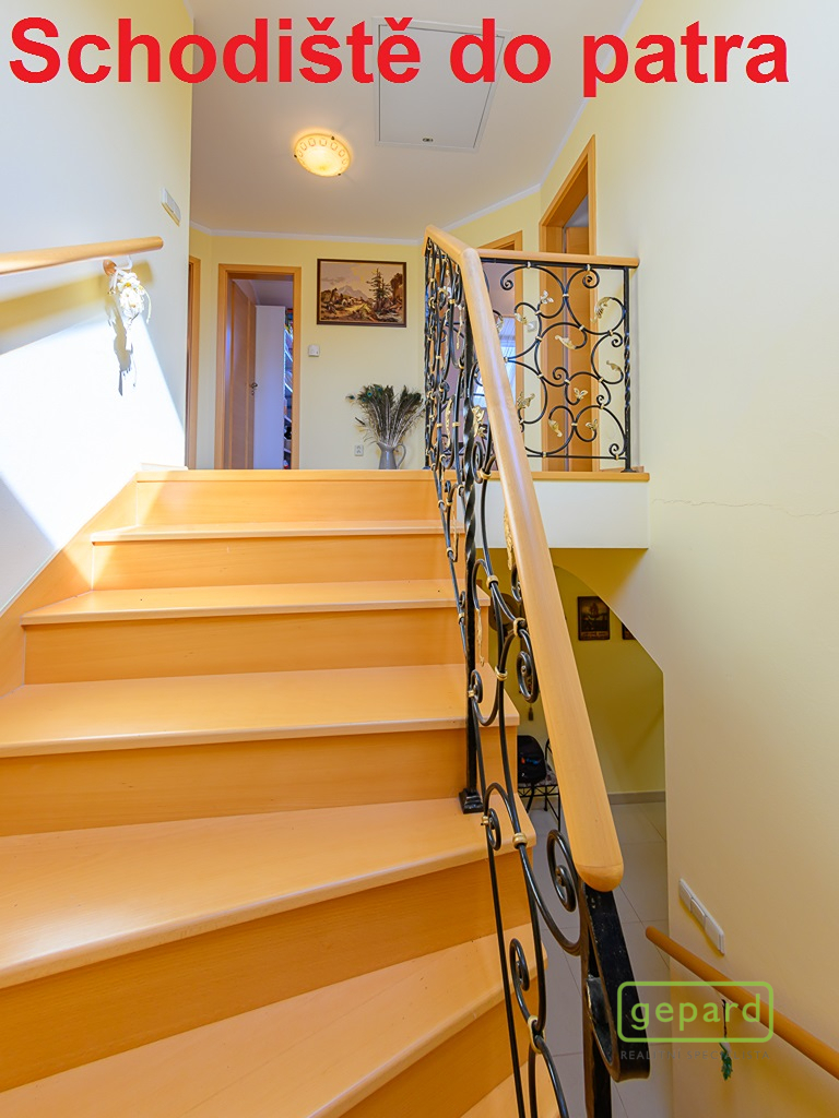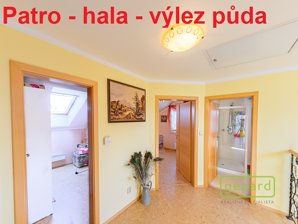 2/ Obytné podkroví se skládá ze schodiště, chodby, koupelny (vana, sprchový kout), 3x pokoj, balkon, samostatné WC, šatna. (dále možnost využití pochozí půdy, vysouvací žebříkové schody).